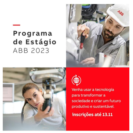 A multinacional suíço-sueca ABB, líder global em tecnologia que impulsiona a transformação da sociedade e da indústria para um futuro mais produtivo e sustentável, está com inscrições abertas para o Programa de Estágio 2023. As vagas estão disponíveis para as operações em São Paulo, Sorocaba (SP) e Contagem (MG).