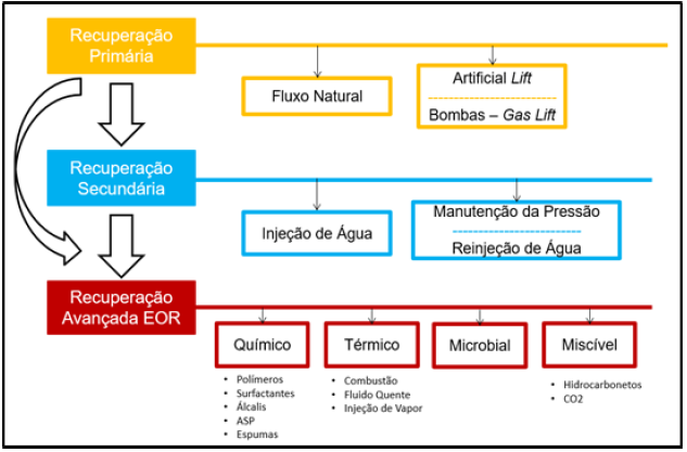 A implementação dos métodos de recuperação avançada de petróleo caracteriza a fase terciária, auxiliando no aumento do