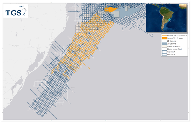 A TGS atualmente detém mais de 447.500 quilômetros em dados de multi-clientes 2D e 69.500 quilômetros quadrados de dados de multi-clientes 3D no Brasil.