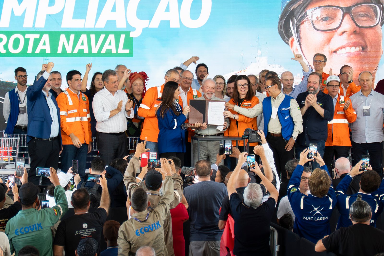 O presidente Luiz Inácio Lula da Silva participa do anúncio de duas iniciativas de fomento à indústria naval, nesta segunda-feira (17), durante evento em Angra dos Reis (RJ), no Terminal da Transpetro. Será lançada a segunda licitação do Programa de Renovação e Ampliação da Frota do Sistema Petrobras e assinados Protocolos de Intenções para o reaproveitamento de plataformas da Petrobras que estão em fase de desmobilização.