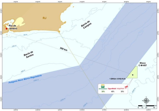 O poço está localizado a aproximadamente 308 quilômetros da costa da capital fluminense, a uma profundidade de 2.892 metros de distância do nível do mar ao solo.
