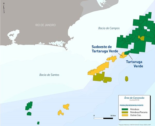 A Petrobras identificou presença de óleo em um poço exploratório do bloco Sudoeste de Tartaruga Verde, localizado na Bacia de Campos, a 130 km da cidade de Macaé (RJ).