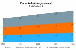 A curva de produção de óleo e gás estimada no período 2020-2024 indica um crescimento contínuo. Ao longo desse período, está prevista a entrada em operação de 13 novos sistemas de produção, sendo todos alocados em projetos em águas profundas e ultra profundas.