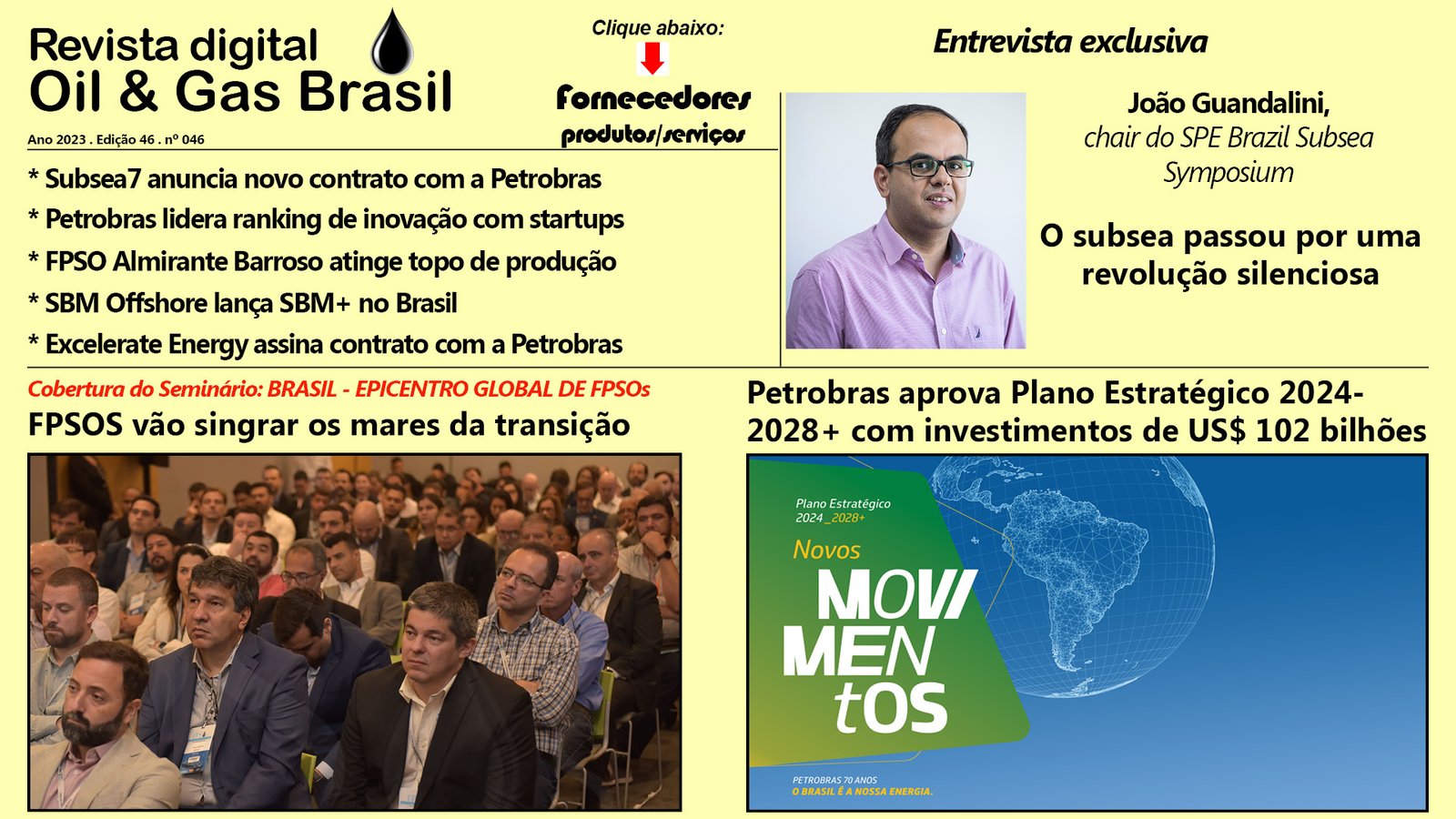 O mercado de FPSOs está aquecido e em expansão, à crescente demanda de projetos no país impulsiona a realização da 2ª edição do evento: Brasil – Epicentro Global de FPSOs, no Rio de Janeiro – que acontece nos dias 17 e 18 de junho de 2024. O evento contará com os principais tomadores de decisão que se reúnem para impulsionar a atividade e apoiar a transformação digital dos FPSOs enquanto reduz a pegada de carbono.