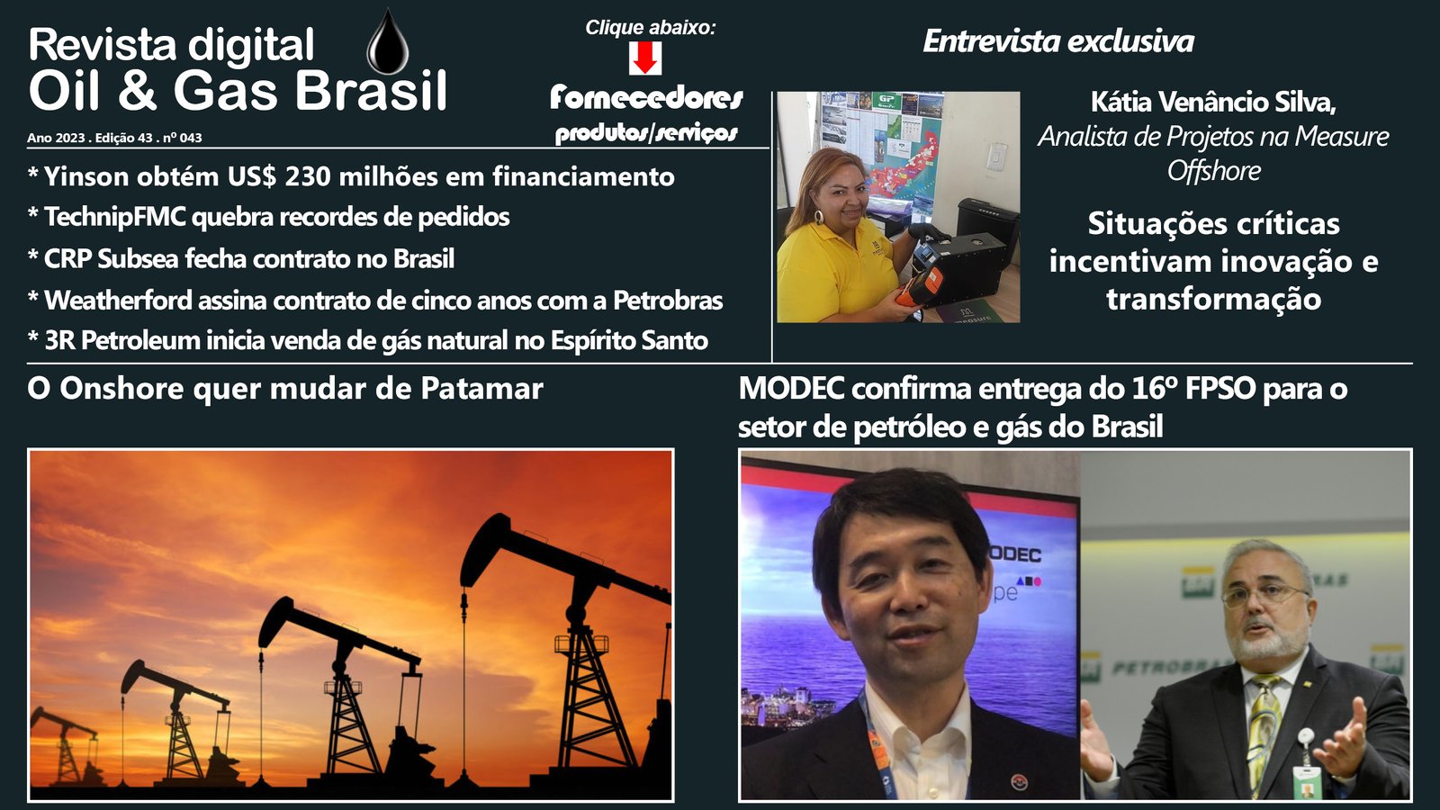📣 Este evento reunirá expoentes da indústria que estão à frente na prestação de serviços integrados Floating Production Storage and Offloading (FPSO), incluindo líderes de mercado como Modec, SBM, Ocyan, Yinson e BW Offshore.
