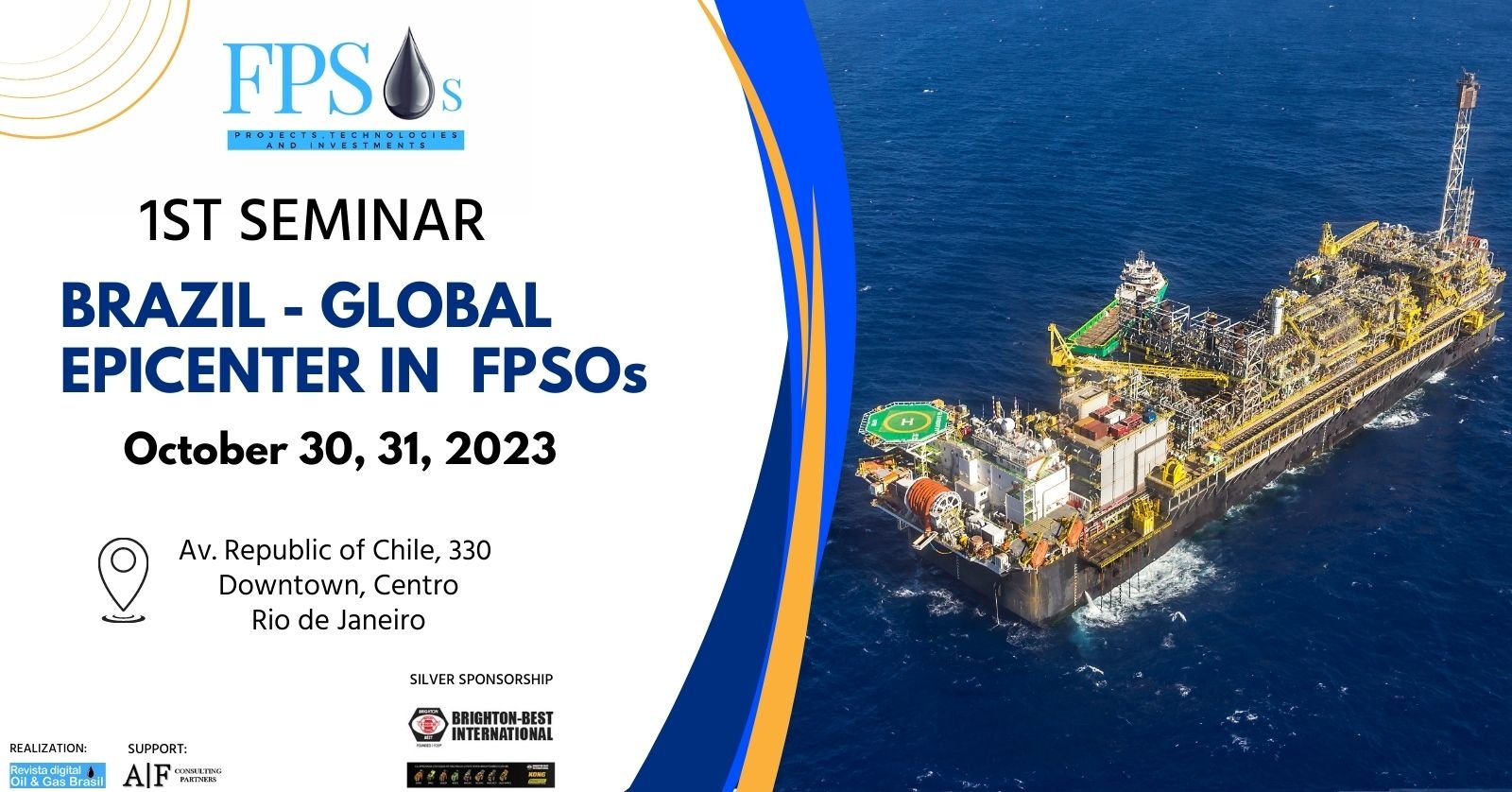 É com grande satisfação que anunciamos o 1º SEMINÁRIO: BRASIL – EPICENTRO GLOBAL DE FPSOs. O evento organizado pela Revista digital Oil & Gas Brasil e apoio da AIF Consulting Partners será realizado na vibrante cidade do Rio de Janeiro nos dias 30 e 31 de Outubro de 2023.