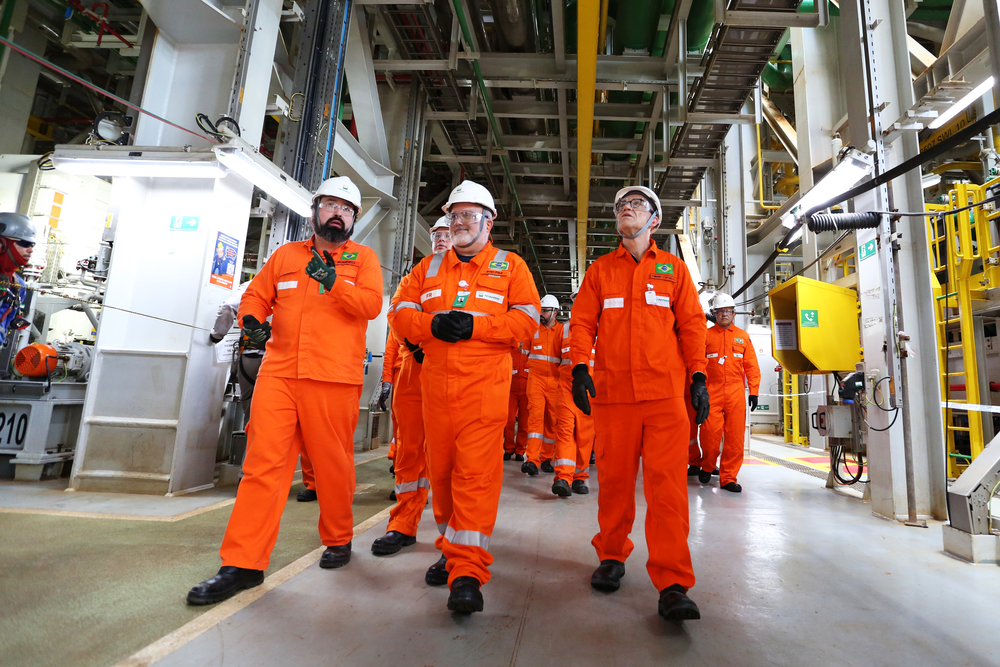 Também estiveram presentes os diretores Joelson Falcão Mendes, da área de Exploração e Produção, Carlos José Travassos do Nascimento, de Desenvolvimento da Produção, Carlos Augusto Burgos Barreto, de Transformação Digital e Inovação, e Clarice Coppetti, de Relacionamento Institucional e Sustentabilidade. Os executivos acompanharam as atividades tanto na área industrial quanto no casario da plataforma, incluindo um almoço no refeitório da unidade.