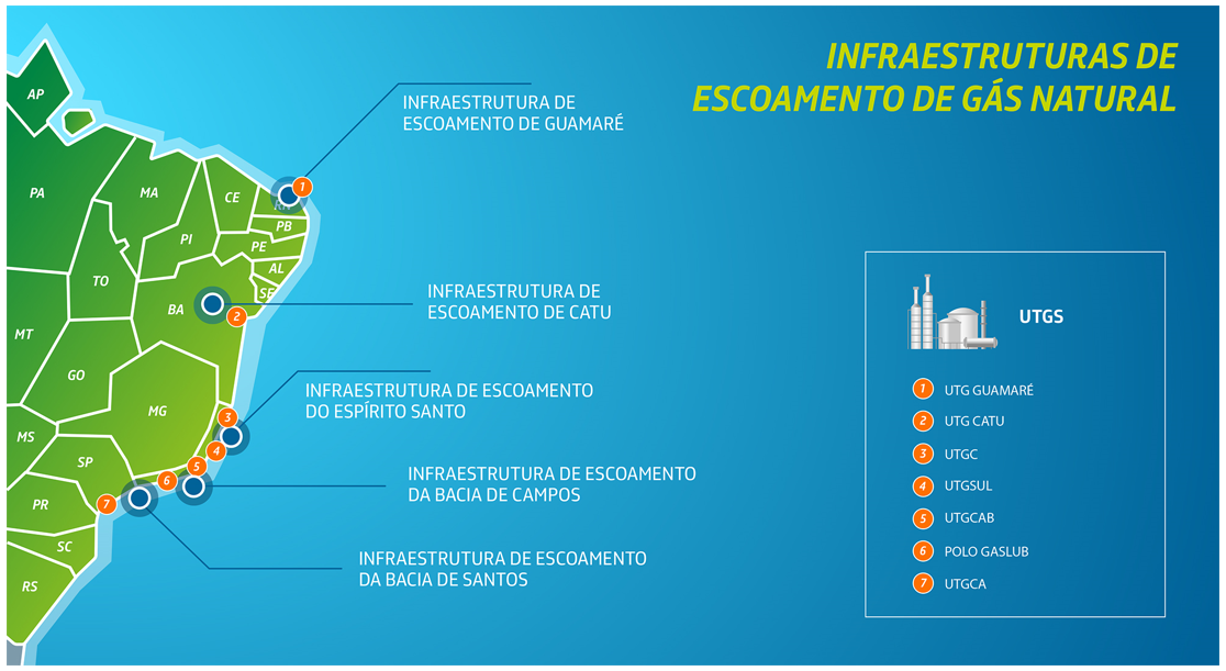 Em setembro do ano passado, a Petrobras anunciou a assinatura de contratos com seus sócios nos gasodutos offshore do pré-sal da Bacia de Santos para compartilhamento da infraestrutura de gás natural. E, a partir deste ano, a companhia passou a disponibilizar capacidade para terceiros não apenas nos gasodutos do pré-sal da Bacia de Santos como em todos os demais ativos de escoamento e processamento de gás natural de propriedade da Petrobras.