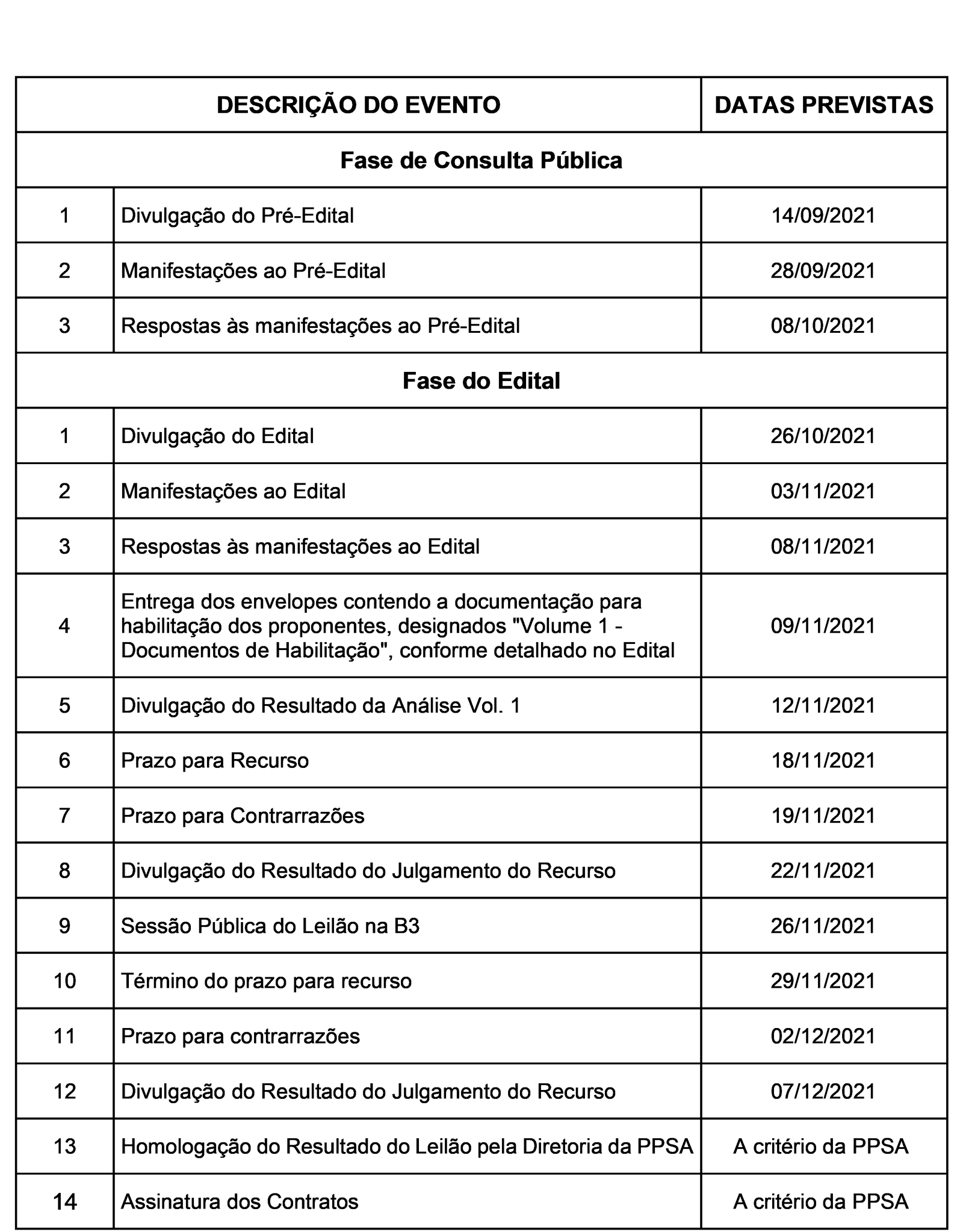 Dúvidas e manifestações ao edital deverão ser endereçadas para o e-mail leilao3@ppsa.gov.br até o próximo dia 28. A versão final do edital será divulgada no dia 26 de outubro.
